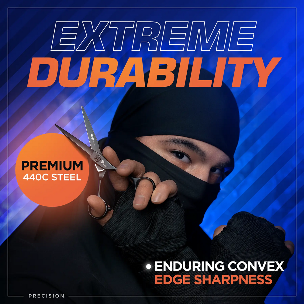 Crafted from premium 440C steel, Ninja shears are renowned for their superior quality, exceptional sharpness, and lasting durability. Engineered for precision, they offer flawless balance and a professional feel. The ergonomic handle ensures superior grip and all-day comfort, enabling precise cuts without fatigue.
